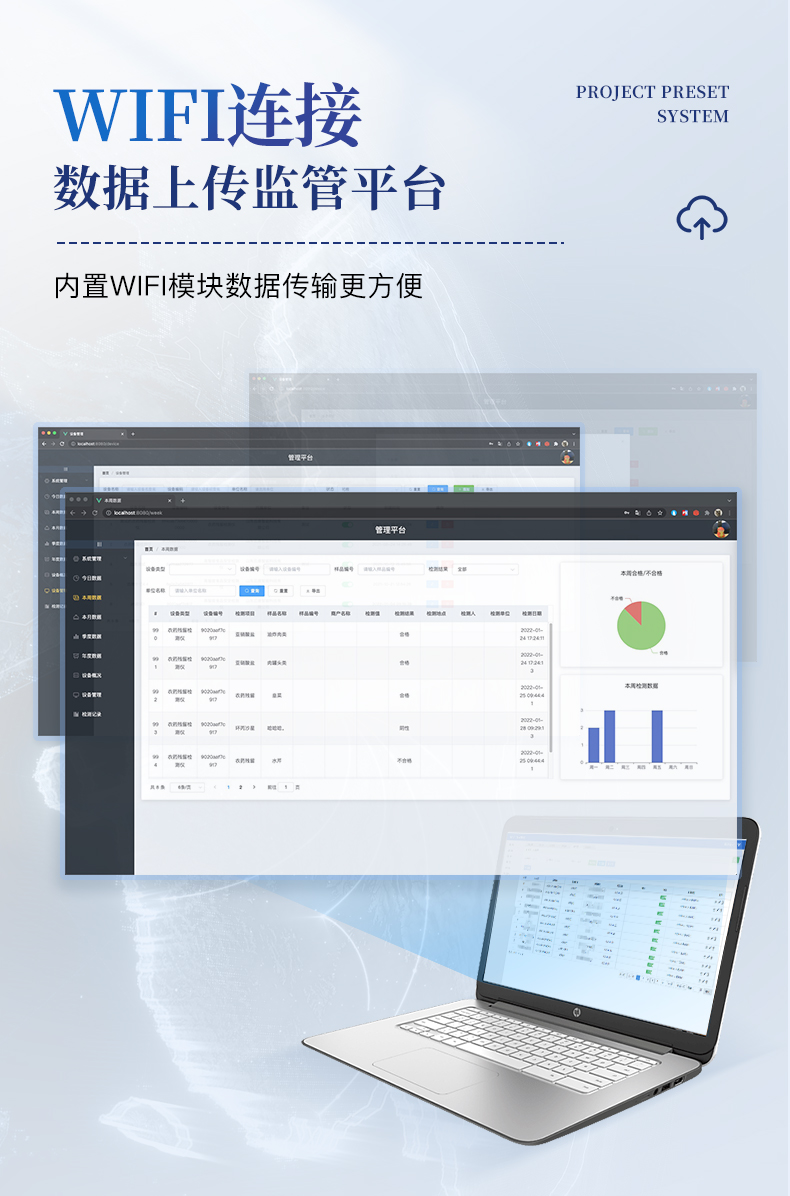| ◆ 机箱采用工业级ABS工程塑料箱,方便携带,稳固耐用,便于流动测试。 | ◆ 安卓智能操作系统,采用更加**的UI交互界面,具有wifi联网上传、4G联网传输、GPRS无线远传、网线连接功能,快速批量上传数据。 | ◆ 一体化主机,包含多通道光电检测??椤⒔禾褰鹈庖卟阄黾觳饽??。 | ◆胶体金模块检测方式:轨道式自动传输扫描,检测完成后自动退出检测卡。 | ◆ CT线自动识别,无需手动调整,检测完成自动显示CT坐标曲线。 | ◆ 仪器具有自检功能:具有开机自检和调零功能,具有自动检测重复性功能。 | ◆ 新一代高速热敏打印机,检测完成可自动打印或批量打印检测报告和二维码。 | ◆ 仪器带有监管平台,数据可局域网和互联网数据上传,检测结果直接传至食品安全监管平台。进行区域食品安全监管及大数据分析处理与数据统计,检测区域农产品安全长短期动态,达到食品安全问题预估、预警 | ◆ 内置强大的数据库,具有多品类多种类样品菜单功能,可灵活选择检测样品,不同的检测通道可同时检测不同的样品项目。也可在仪器上直接编辑录入样品名称、检测指标、送检单位等信息并保存进样品数据库。 | ◆产品内置操作演示视频,是您身边的化验指导专家。 | ◆ 样品处理简单省力,整体操作快速、安全、便捷。 | ◆ 高灵敏度,高检测精度,高重复性精度,扫描式高精度光学传感器。 | ◆ 结果判定线可修改,对照值标定值可保存,断电不丢失数据。 | ◆ 兼容市场上所有的胶体金卡,使用耗材不受限制。 | ◆ 仪器具有重新校准、锁定、恢复出厂设置功能。 |