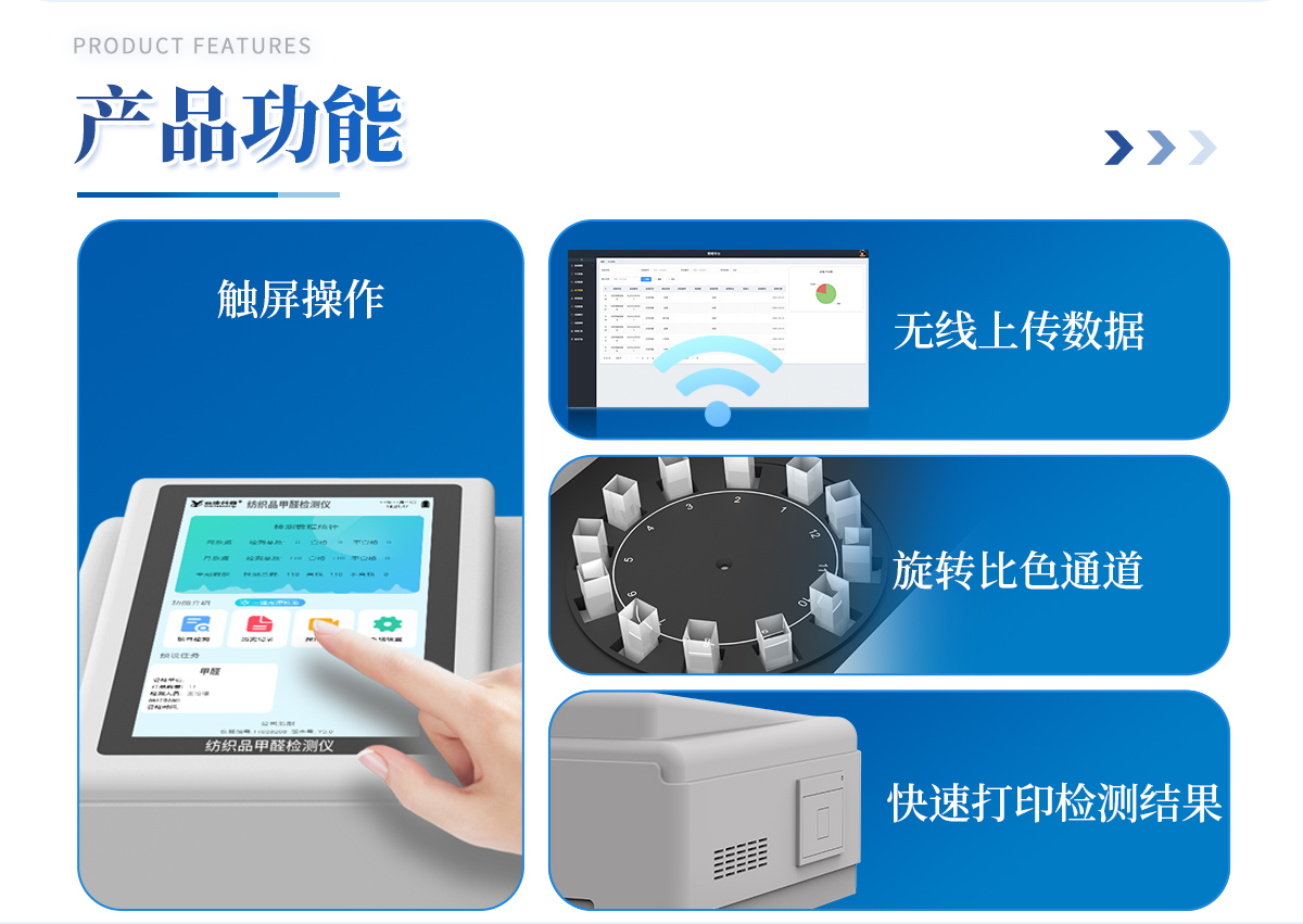 产品介绍:本套纺织品甲醛检测设备满足纺织品甲醛含量检测的中国标准《国家纺织产品基本安全技术规范》(GB 18401-2010)、《纺织品·甲醛的测定·第1部分:游离和水解的甲醛(水萃取法)》(GB/T ···