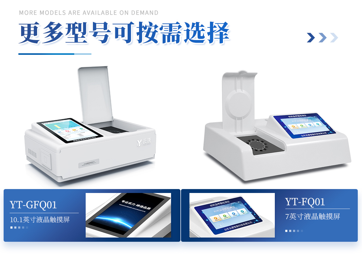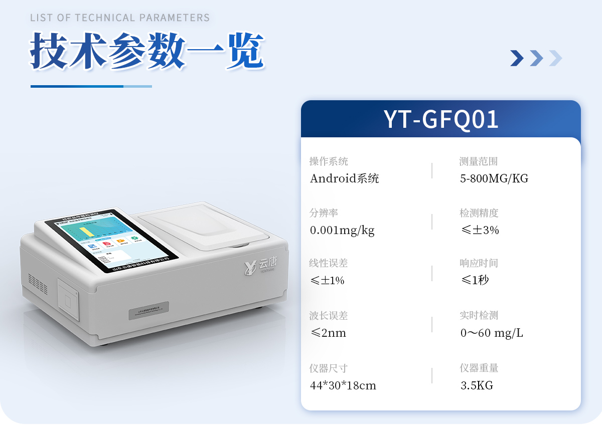 | 1、智能**且方便 | ①智能芯片:主控芯片采用ARM Cortex-A7,RK3288/4核处理器,搭配安卓智能操作系统,集实验操作,分析结果,打印报告等功能于一体,使用方便,性能更强。 | ②大屏显示:采用10.1英寸液晶触摸屏,单机即可操作,无需连接外部显示或控制器。 | ③多样同检:仪器具有12个检测通道,可同时一次性检测11个样品,效率更高。 | ④工作预设:具有任务预设???,一键提前预设样品所有信息内容。来样时可直接检测,同时可多次调取。 | ⑤数据分析:设备首页自动汇总分析数据,并绘制柱形分析图,各项检测数据一目了然,快捷直观。 | ⑥高度集成:??楦叨燃?,将分光光度模块、数字化管理???、无线通讯??榧捎谝惶???山觳饨峁蟹治觯苯由洗潦萜教?,实现数据共享,方便后期进行数据分析与统计。 | ⑦远程升级:仪器具备远程升级功能,可远程升级程序,无需返厂,并可持续性免费更新系统版本,降低成本及运输损耗风险。 | 2、检测精准且直观 | ①专利技术:精密旋转比色池,使用同芯片同光源校准精度,解决不同光源之间存在波长误差的问题,更加准确**。 | ②结果直观:仪器自动对检测结果与国标限量值进行对比,自动判定结果是否合格,结果更直观。 | 3、功能强大且实用 | ①存储功能:设备可以存储数据100000组,可在屏幕上直观查看历史数据,可导出数据。 | ②打印功能:设备自带打印功能,可对样品信息及检测结果无限次随意打印。 | ③全新方式:新创自定义打印方式,可按需灵活勾选控制:二维码,抽样信息、检测信息,受检信息、复核信息、抽样日期、检测日期等信息的打印 | ④多重编辑:样品信息可多重编辑,可以对每个通道属性和样品信息单独进行编辑,例如样品信息、抽样信息、检测信息,受检信息、复核信息、抽样日期、检测日期等信息等。 | ⑤双语设计:全中文/英文操作菜单,简单实用,适用于不同用户的需求。 |