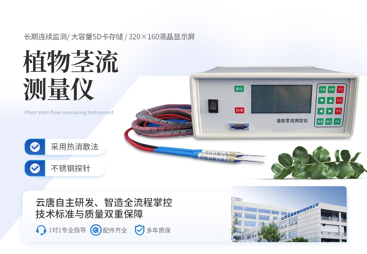 植物茎流测量仪采用热消散探针法测量树干瞬时茎流密度,可以长期连续观测树木的液流,有利于研究树木和大气之间的水分交换规律,并以此为观测手段,长期监测森林生态系统对环境变化的影响。对于造林绿化、森林管理和林业管理等具有重要的理论指导意义和应用价值。