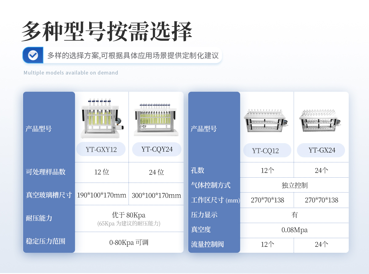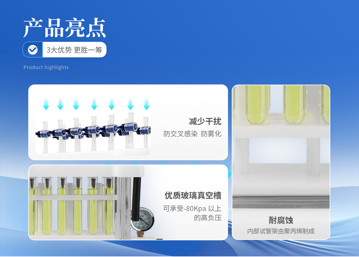 | 可处理样品数:12 位 | 真空玻璃槽尺寸:190*100*170mm | 耐压能力:优于 80Kpa(65Kpa 是我们建议的耐压能力) | 稳定压力范围:0-80Kpa 可调 | 配套试管架尺寸:?13/ ?16,长度 145mm 以下。 |