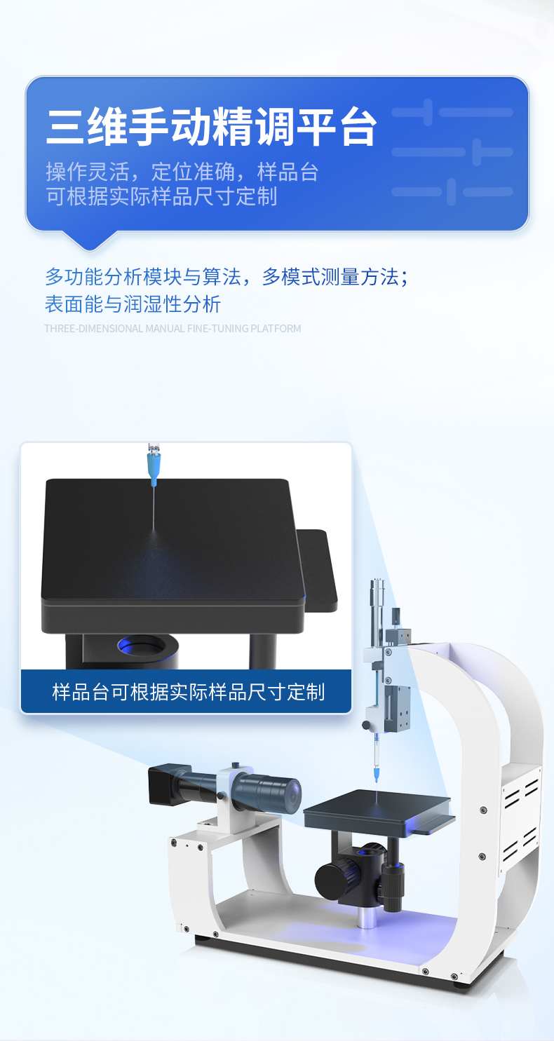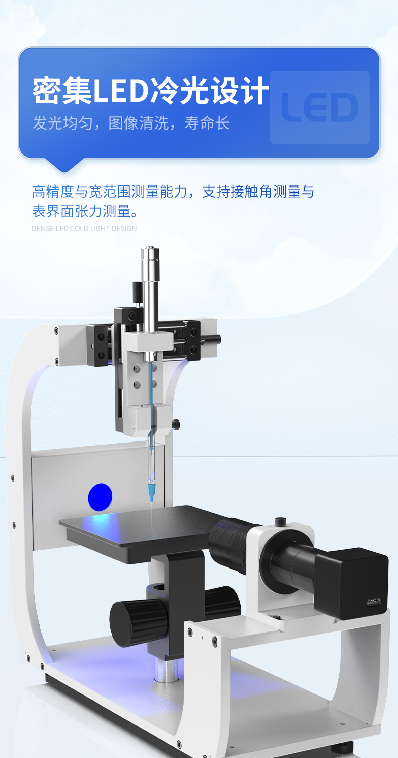 产品概述:光学接触角测量仪是测量液体对固体材料接触角的仪器,主要用于表征液体对固体材料表面的润湿性能,通过光学成像获取液滴的图像,利用计算机软件,通过数学模型拟合出液滴图像的轮廓并···