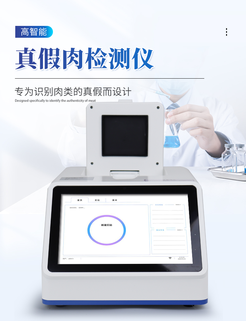 | 真假肉检测仪通过实时荧光定量pcr技术进行检测,利用特定的引物和探针对肉类样品中的DNA进行扩增和检测。 | 以下是其详细的工作步骤: | 1.样品准备:将肉类样品进行均质化处理,提取DNA。 | 2.PCR反应:在反应管中加入特定的引物、探针和样品DNA,置于检测仪中进行PCR扩增。 | 3.实时检测:在PCR扩增过程中,仪器通过荧光信号实时监测DNA扩增情况,生成扩增曲线。 | 4.数据分析:根据荧光信号强度和扩增曲线,判断样品中是否含有特定的DNA序列,从而确定肉类的真假。 |