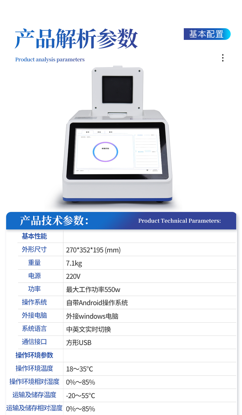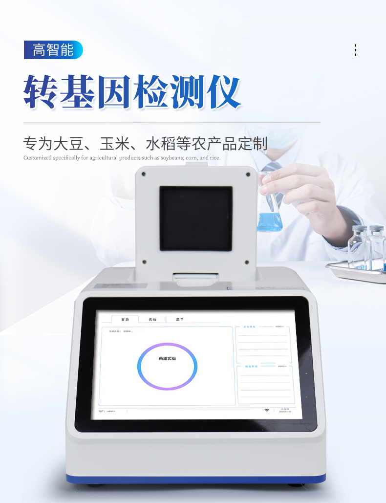产品简介:本款转基因PCR检测仪专为大豆、玉米、水稻等农产品定制,基于实时荧光定量技术,快速精准检测转基因成分。便携易用,快速出结果,适配田间、种子筛选等场景,为种植合规与品质管控提供···